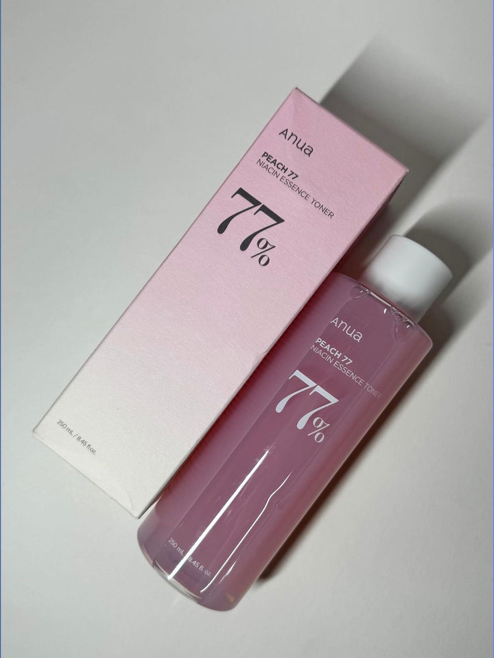 Infused with 77% peach fruit extract and niacinamide, ANUA Peach 77 Niacin Essence Toner brightens, hydrates, and revitalizes dull skin. This lightweight, refreshing formula helps even skin tone and refine texture for a smooth, radiant glow.