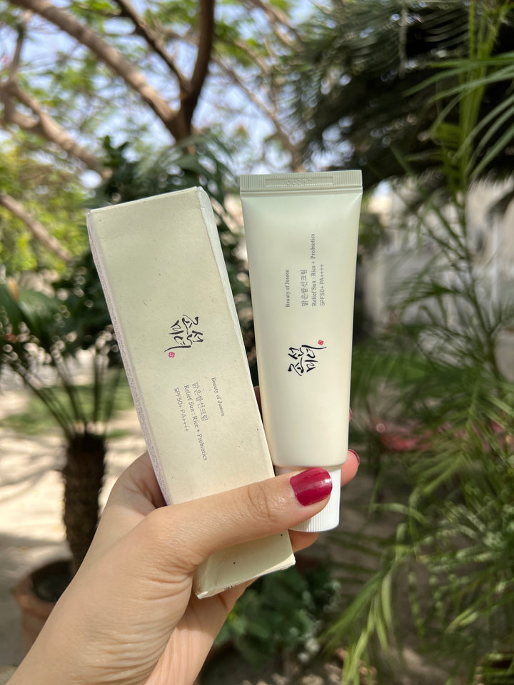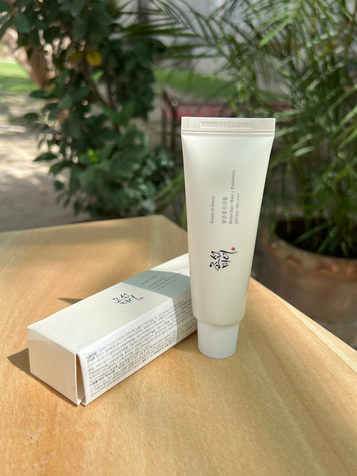 Beauty of Joseon Relief Sun: Rice + Probiotics SPF50+ is a lightweight, hydrating sunscreen that protects and nourishes skin with rice extract and probiotics.